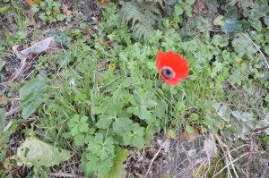 De røde anemoner er forårsbebudere. De starter tidligt i februar spredt, en og en. Om nogle uger vil der være hele røde tæpper af dem enkelte steder, indtil ca midten af april hvor andre blomster overtager billedet.