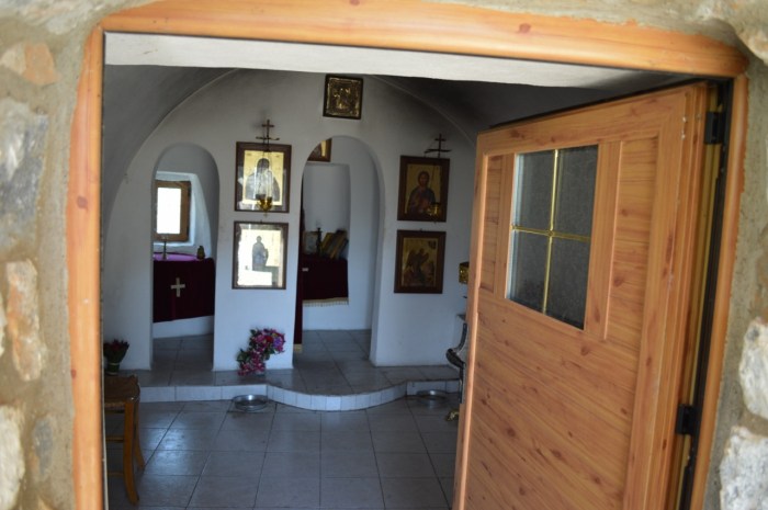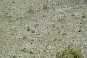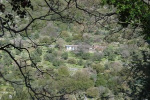 På den anden side af dalen kan vi se en lille farm som ser fin og velholdt ud. Den blev bygget for mange år siden af et par fra Milea som ville dyrke pistacier. Det blev ikke til noget, og nu bliver den vistnok lejet ud til nogle albanere som holder høns.