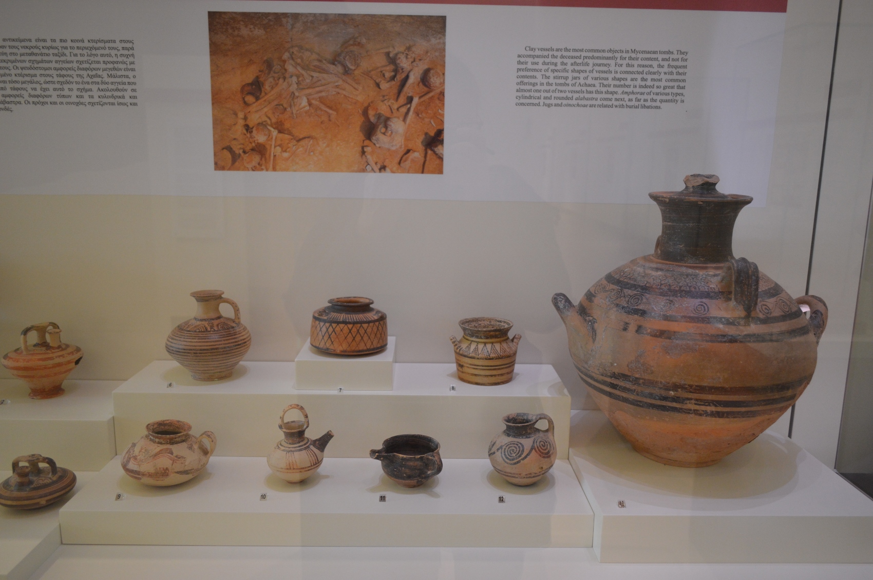 Museet har en meget fin samling af ting fra mykensk tid, dvs fra ca 1700- 1100 før vor tidsregning, og desuden en stor samling fra da romerne havde koloniseret området omkring vor tidsregnings begyndelse og nogle hundrede år frem. Fra de mellemliggende ca 1000 år er der få, men interessante ting.
