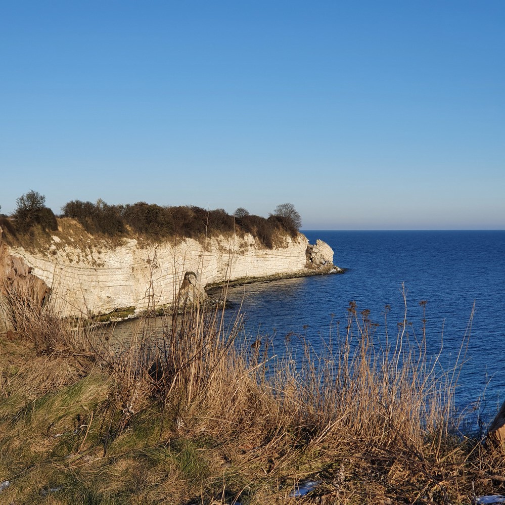Der er flot udsigt til havet og klinten der bugter sig.