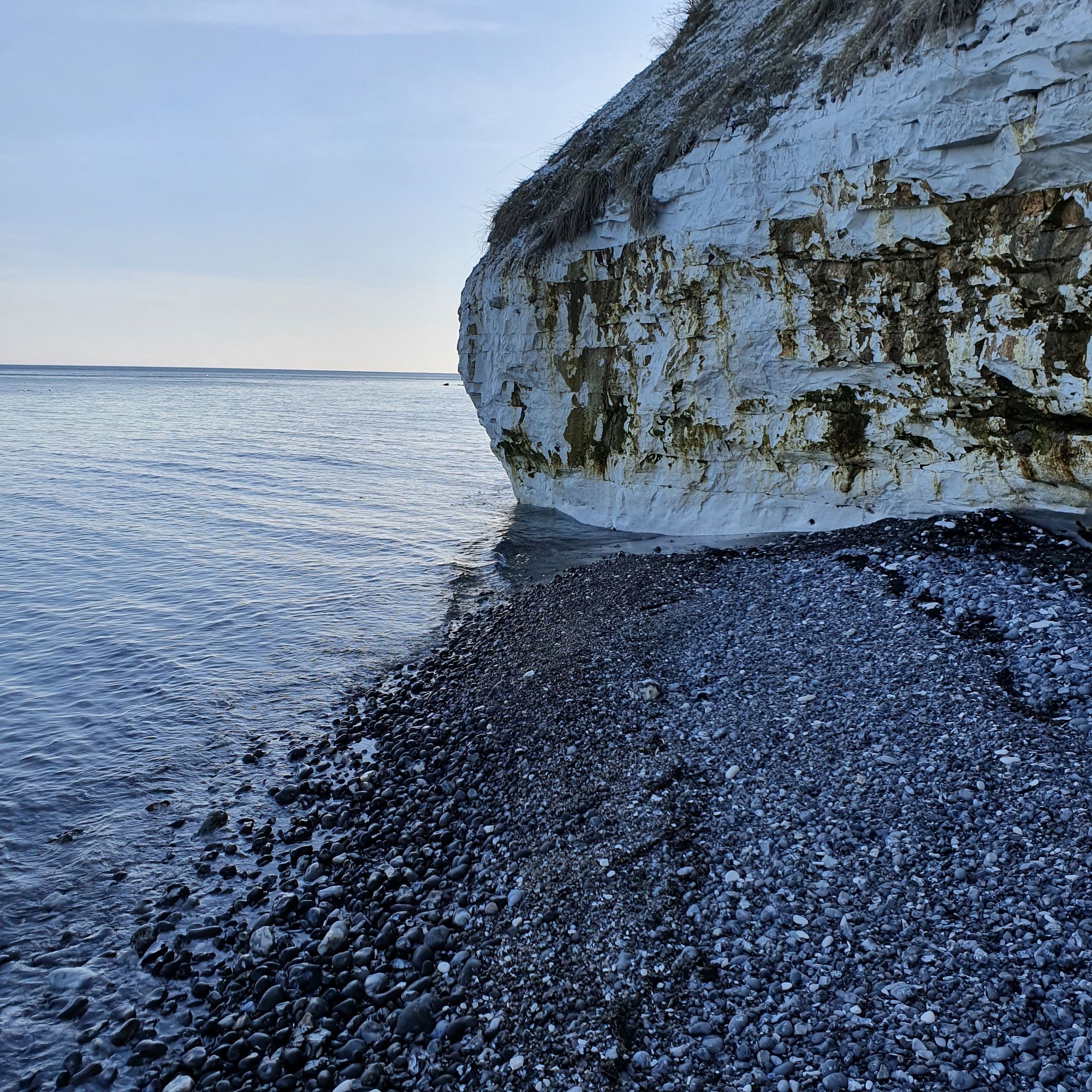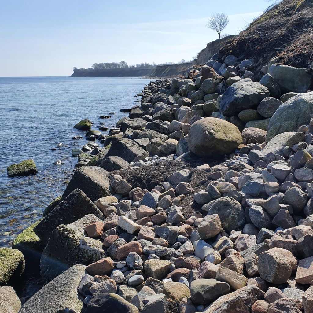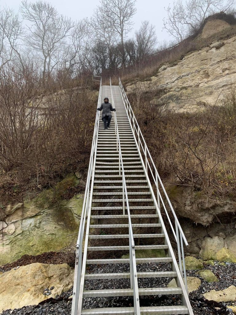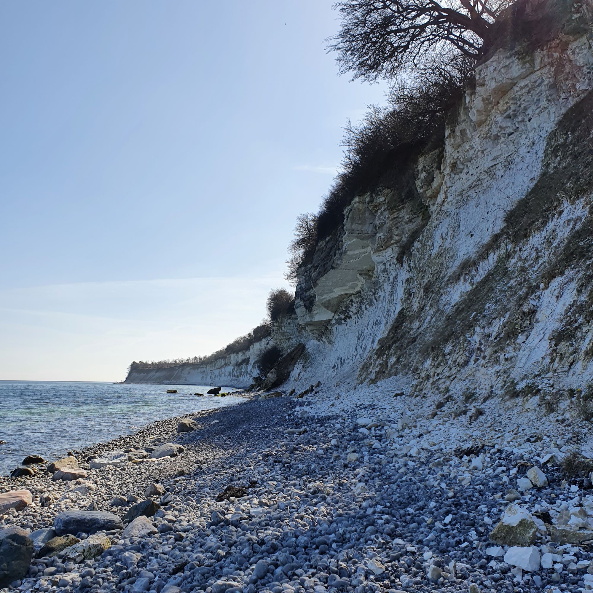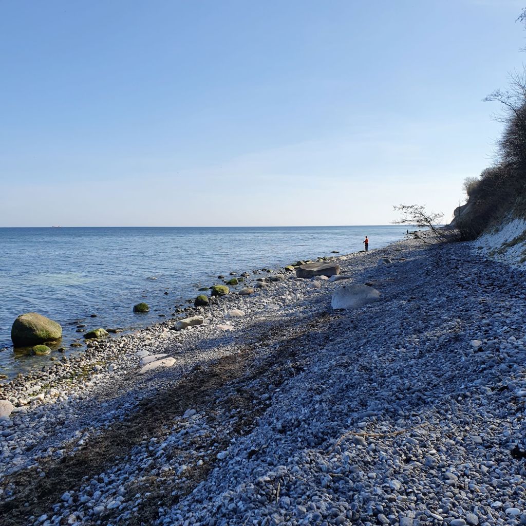 Andre steder er stranden fin og bred, og der stod tålmodige fiskere med mellemrum. Jeg spurgte en af dem om hvordan stranden er sydover mod Mandehoved. Han havde ikke gået så langt, men mente at jeg kunne gå noget længere langs vandet, så længe det ikke var storm eller højvande. Han mente også at der var en trappe som førte op på klinten på et tidspunkt.