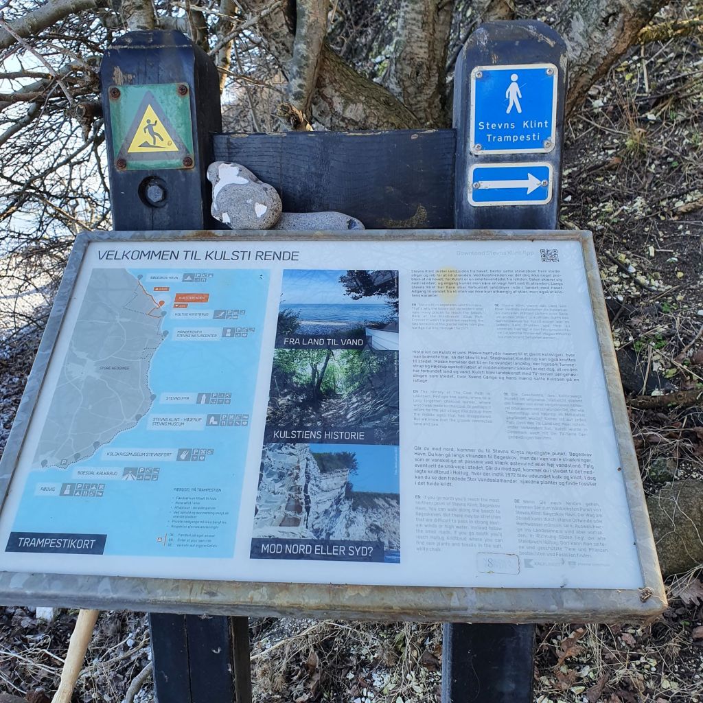 16. Januar 2021. En lidt kold dag tog jeg denne tur sammen med Helle My. Først gik vi en lille tur i Rødvig, som er en lille hyggelig fiskerby, og fandt derefter Trampestiens begyndelse nord i byen. Det er også her klinten begynder, og stien går på klinten, i kanten af markerne.