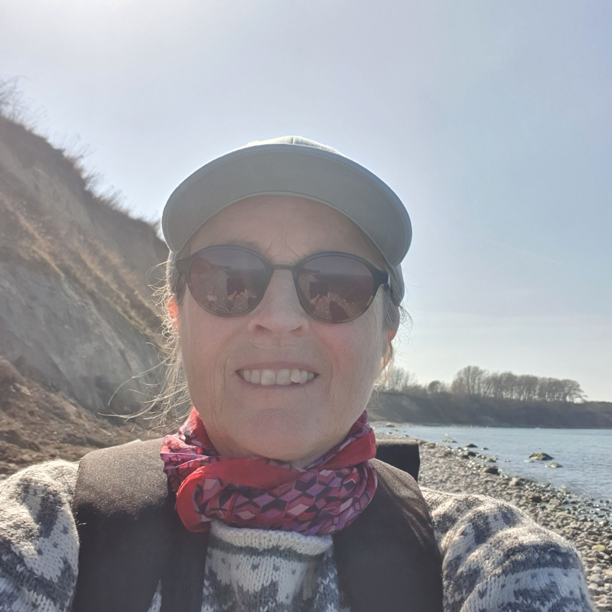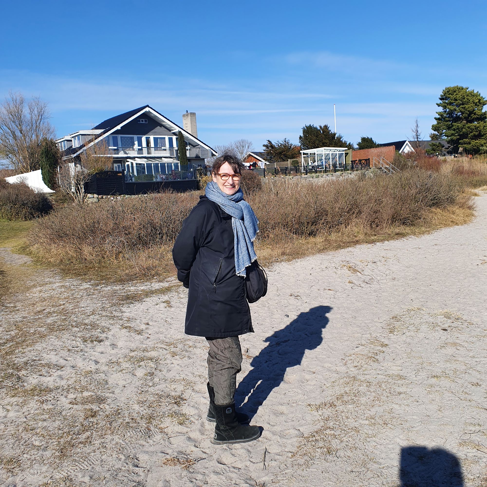 Jeg har jo boet rigtig mange år i Norge og i Grækenland, og der er derfra jeg har det meste af min vandre-erfaring. Jeg kan godt lide at komme op på en høj top, og se langt ud over landskabet, og bogstaveligt talt få nye perspektiver på omgivelserne. Det kan man ikke så tit i Danmark. Selv om her er smukt og skønt og nemt at gå, er det ikke mange steder man kan komme op og se langt væk. Men ved havet har man udsyn, og ved en bugt kan man også se land der ligger langt væk. Selv om det ikke er store former og dybe perspektiver, kan jeg alligevel nyde at kigge på den tynde horisontlinje, og finde ud af hvilke bygninger og landemærker der stikker op mange kilometer væk.