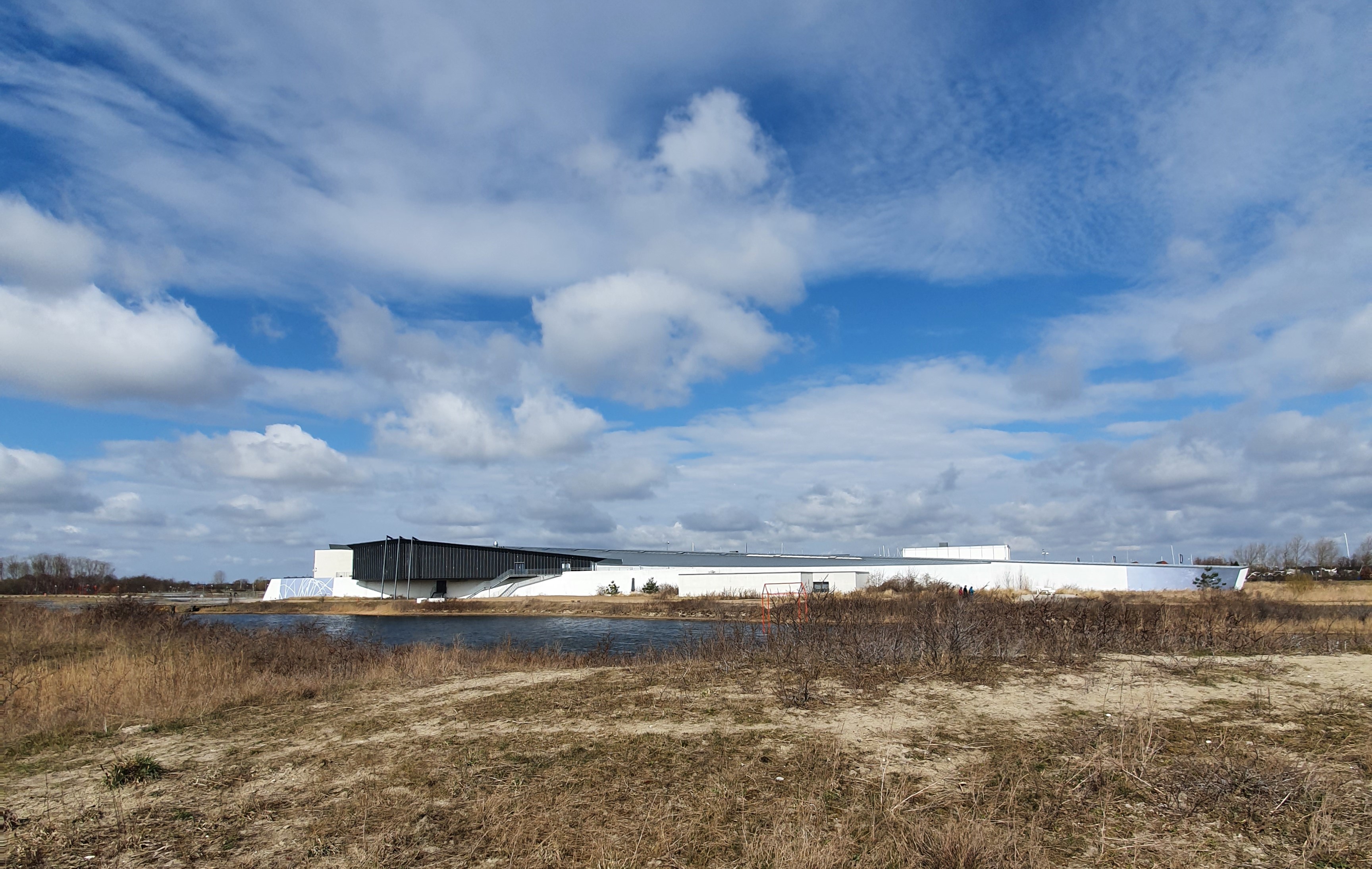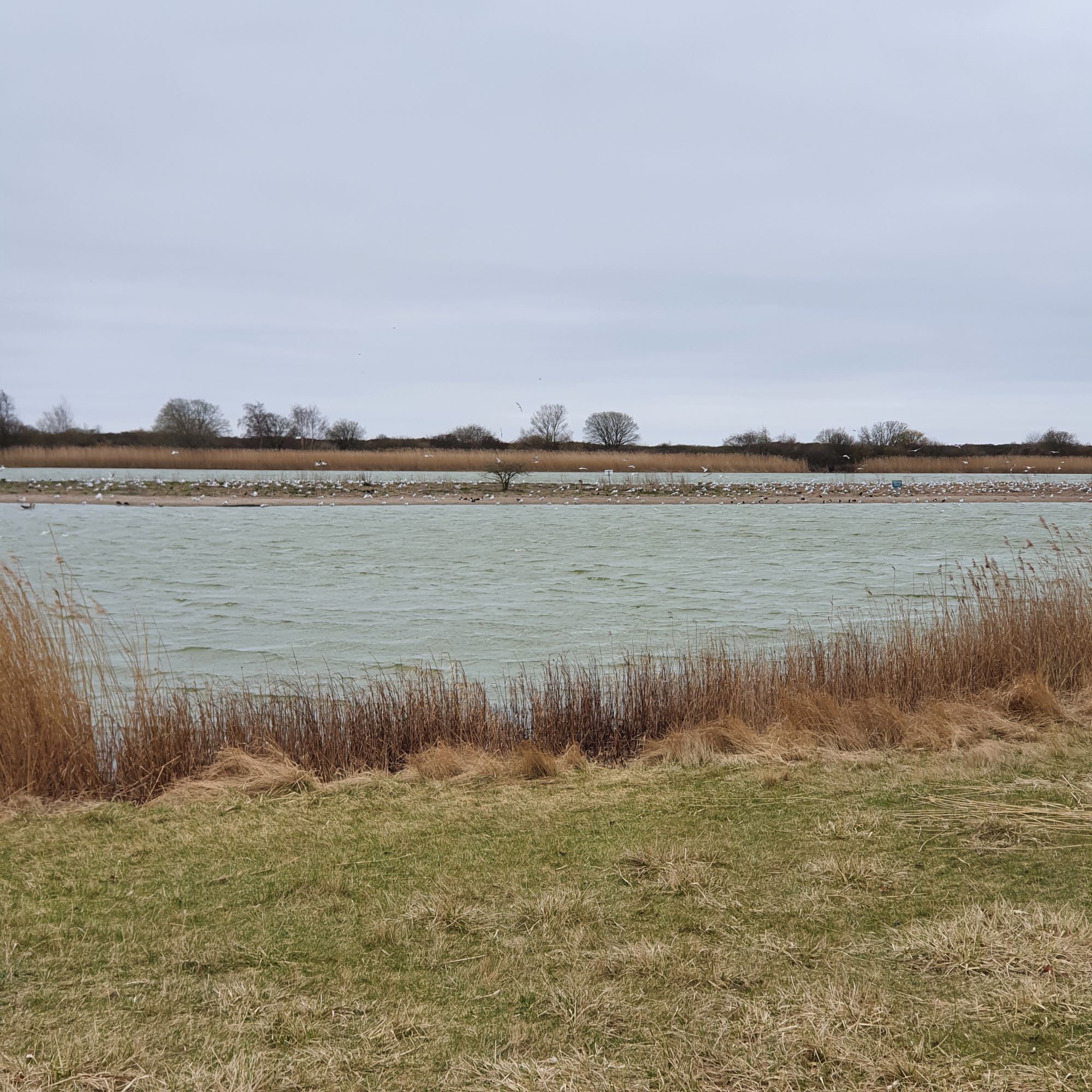 4. april 2021. Jeg parkerede ved Arken, og fortsatte nordpå, stadigvæk en del af Køge Bugt Strandpark, lavet på samme måde, ved at en naturlig revle har fået påfyldt enorme mængder sand og beplantet, også her er en lang saltvands sø mellem revlen og fastlandet.