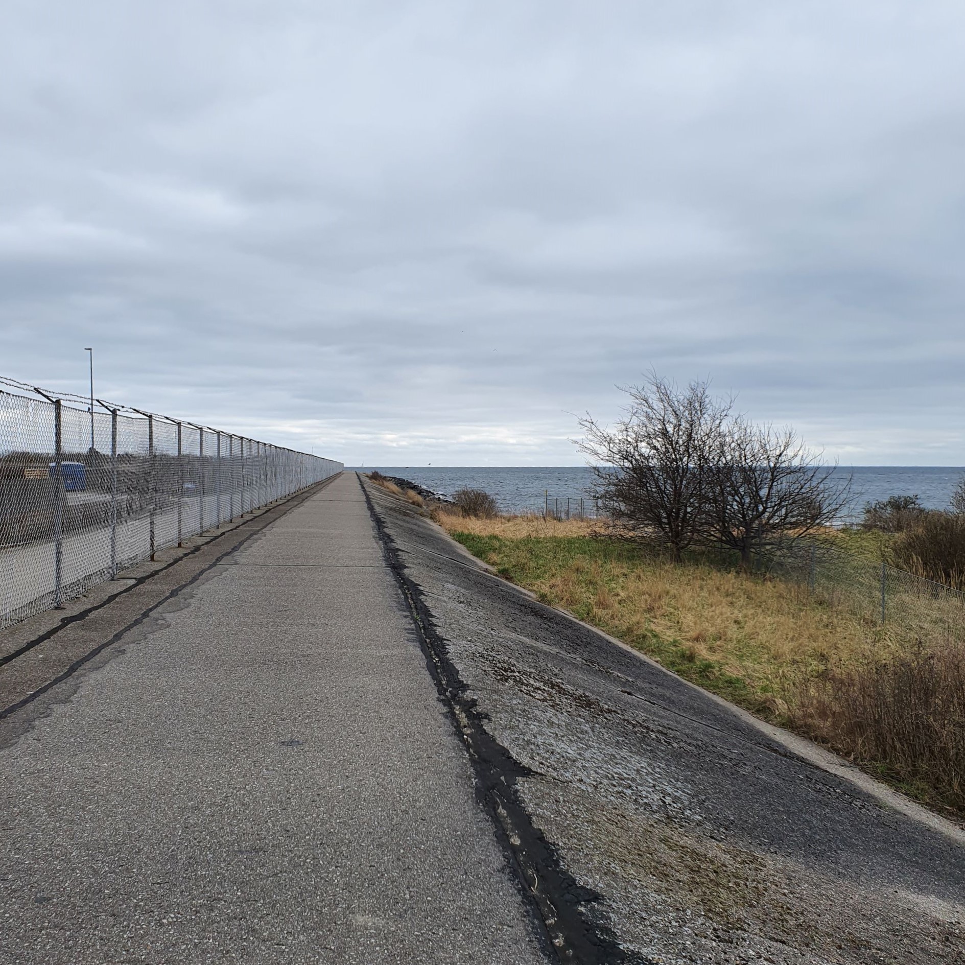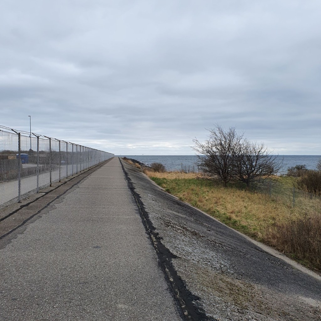 Jeg havde været spændt på hvor længe jeg kunne blive ved med at gå langs med vandet. Og det kunne jeg faktisk helt hen til Avedøreværket. Der er lavet en cykel- og gangsti, afgrænset af et stort hegn.
