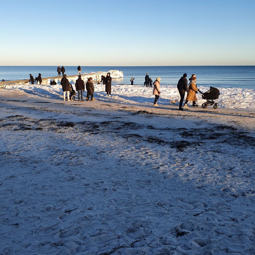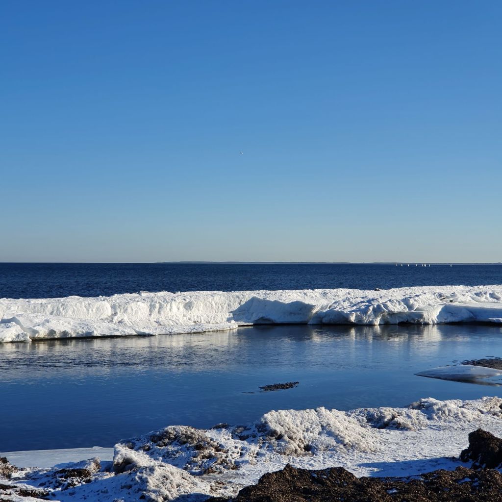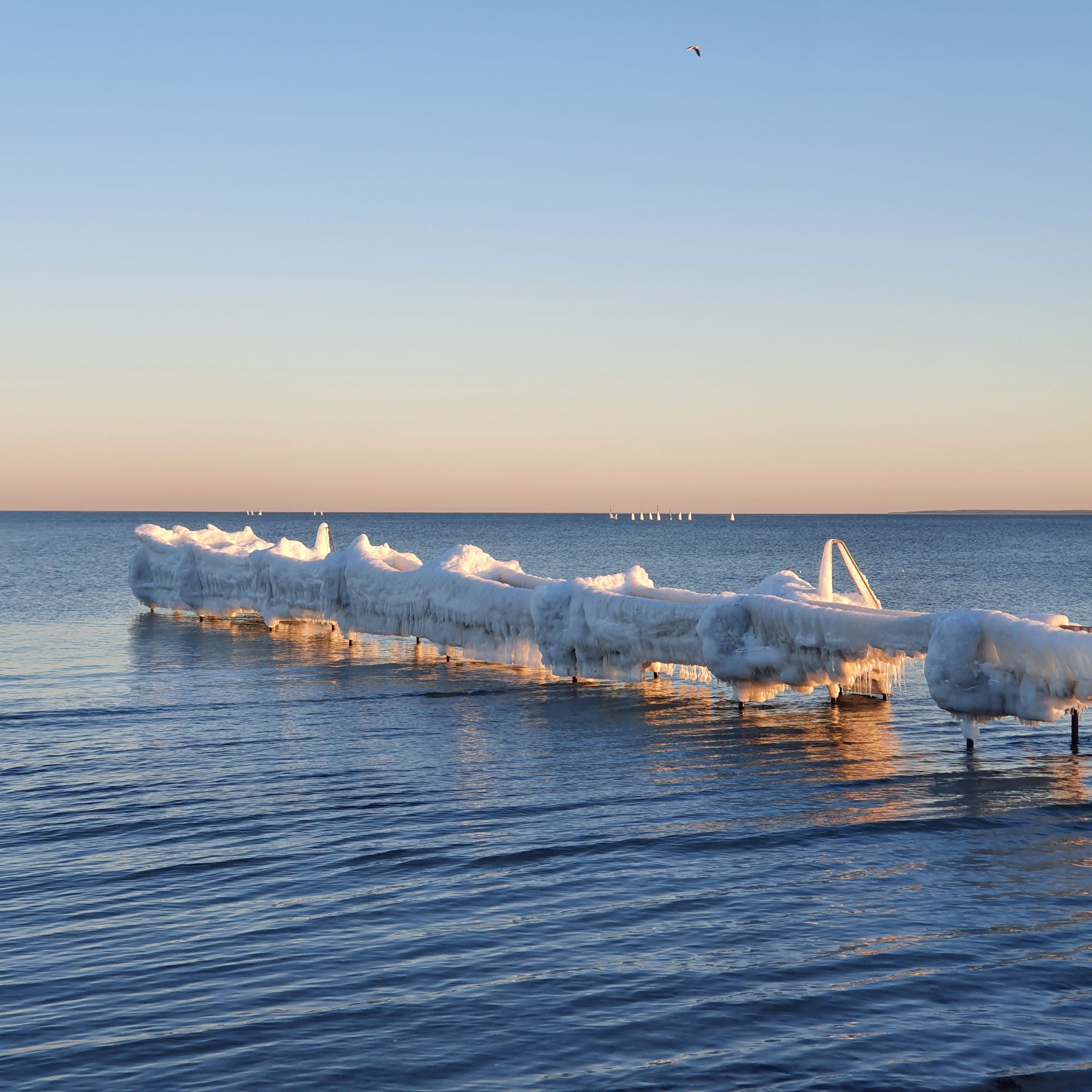 Derefter gik det nordpå igen, forbi diverse badebroer som ikke just indbød til at hoppe i vandet, men et flot og sjælden syn med den slags is-formationer i Danmark.