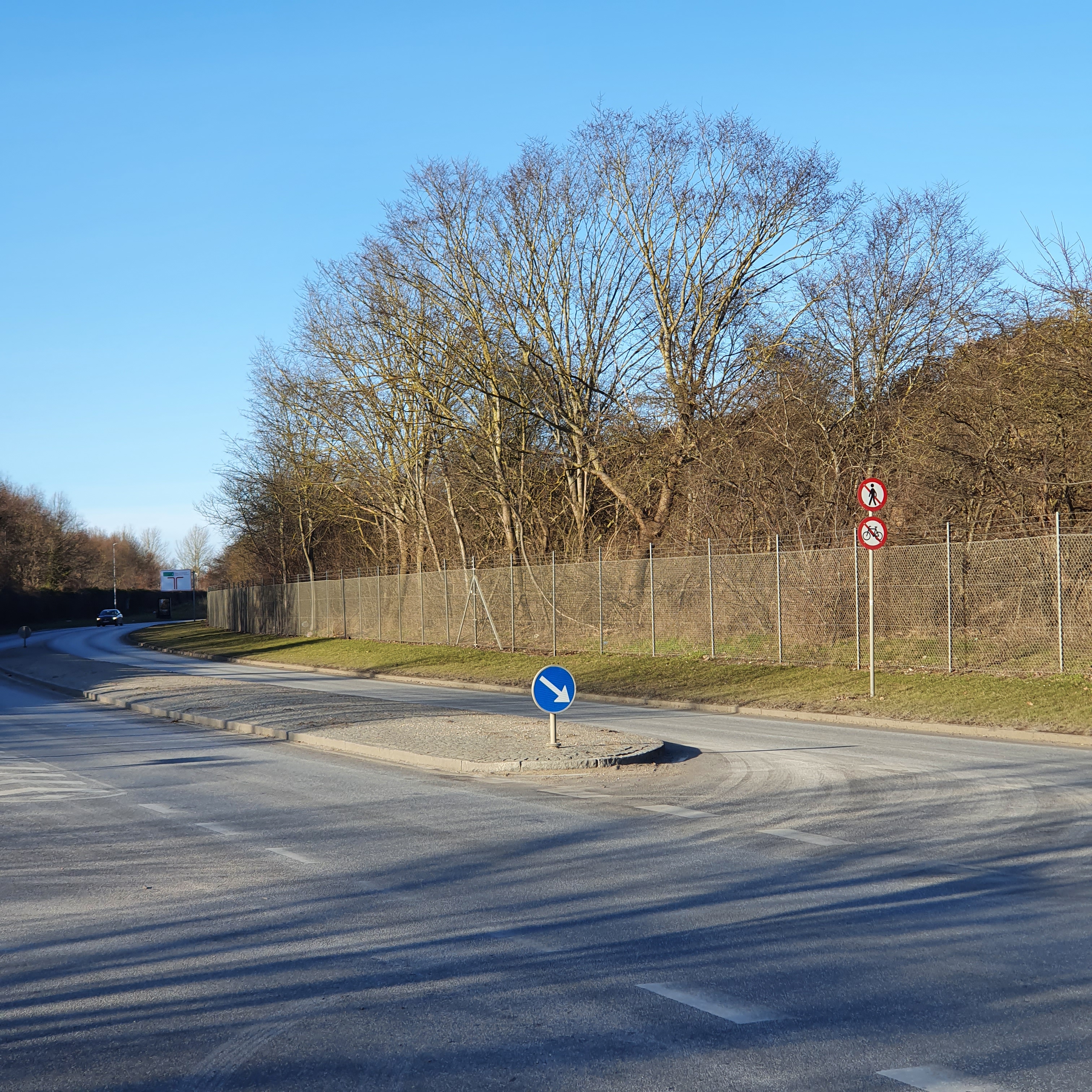 Straks efter kom jeg til Værftsvej, hvor man hverken må gå eller cykle. Det irriterer mig, for der kunne sagtens være plads til cykel og gangsti i begge sider af vejen, og det ville give en meget nemmere adgang til Køge Marina, både fra nord og syd.