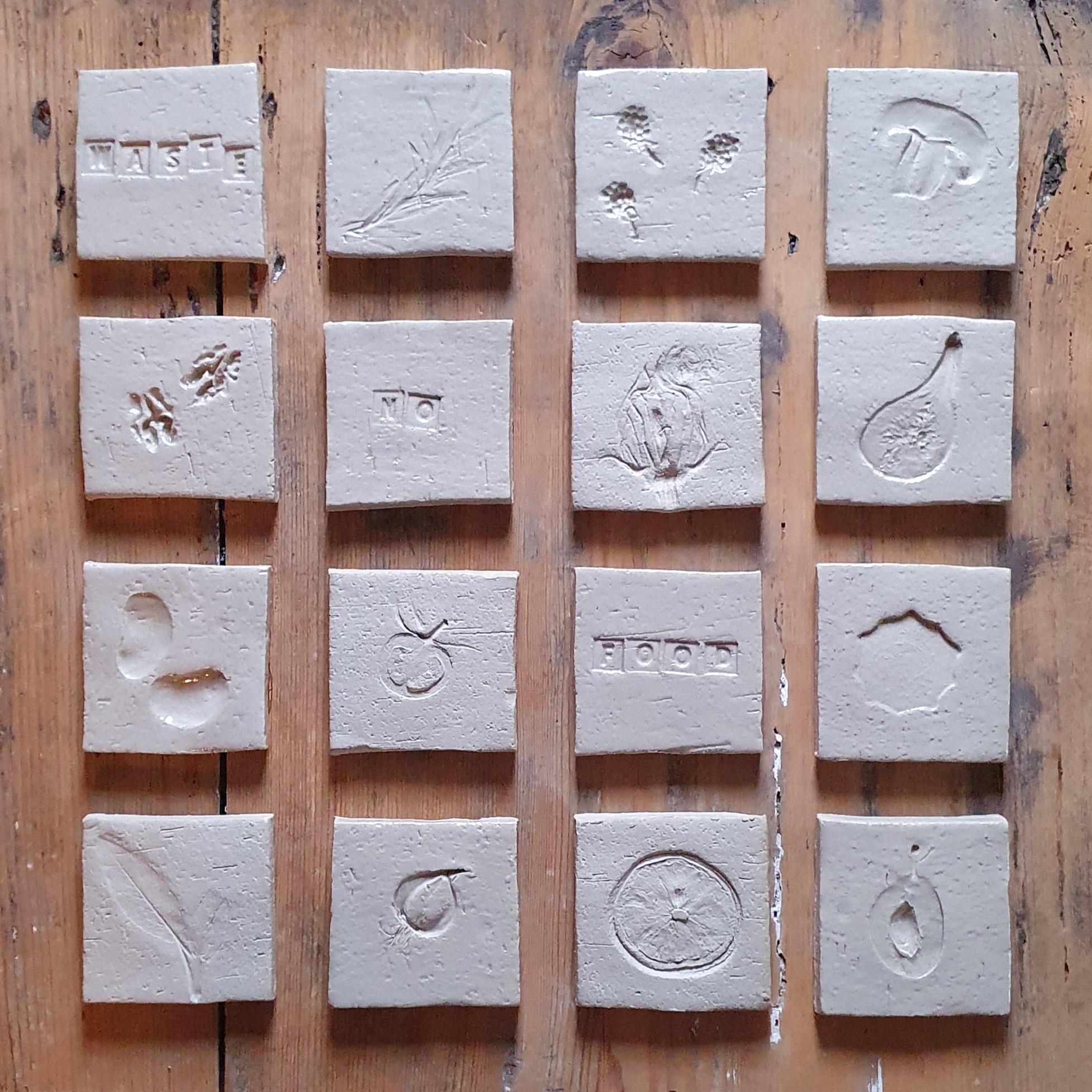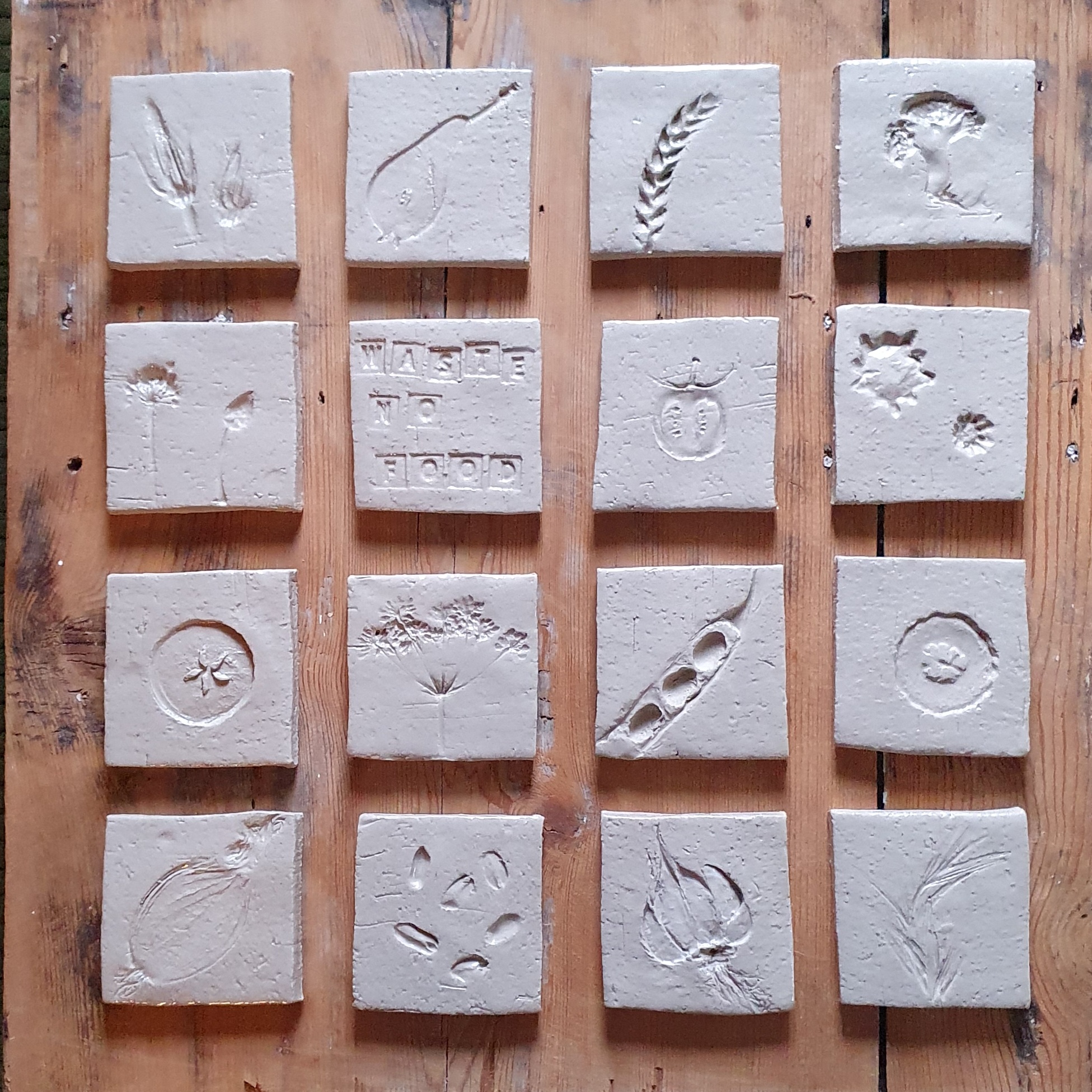 appreciate the food, is also to enjoy its beauty. So I have taken vegetables and fruits and seeds, mostly from my kitchen garden i Denmark, I have cut (most of) them, and printed them directly into the wet clay.