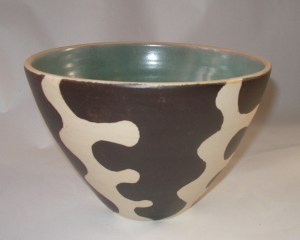- Skål, steintøy, 2010, hæyde 12 cm diameter 22 cm.